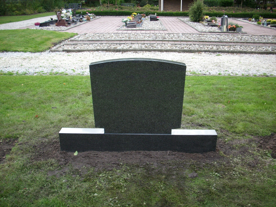 Authentieke Staande Gedenksteen. De letterplaat staat op een extra breed voetstuk om eventueeel een windlicht en/of lantaarn naast de letterplaat te kunnen plaatsen.